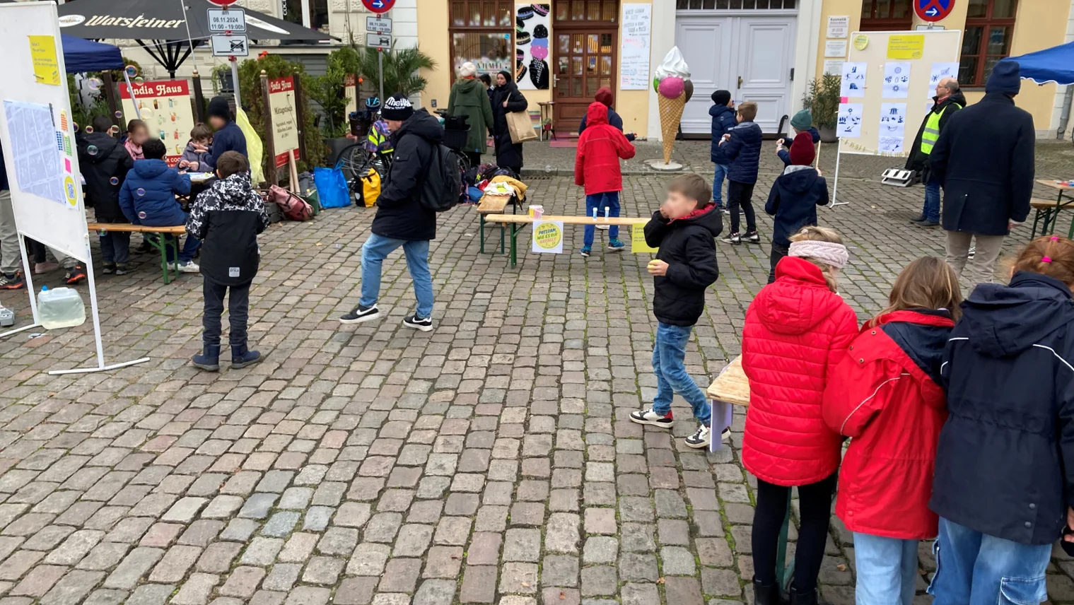 Am 8. November 2024 wurde der Platz am Jägertor in Potsdam für einen ganz besonderen Nachmittag reserviert: Rund 40 Kinder aus der Nachbarschaft, aus nahegelegenen Horten und von Innenstadtbesuchern kamen zusammen, um ihre Ideen und Wünsche für die Zukunft ihres Stadtteils einzubringen. Für den Aktionstag wurden extra Parkflächen gesperrt und Platz für vier spannende Mitmach-Stationen geschaffen.